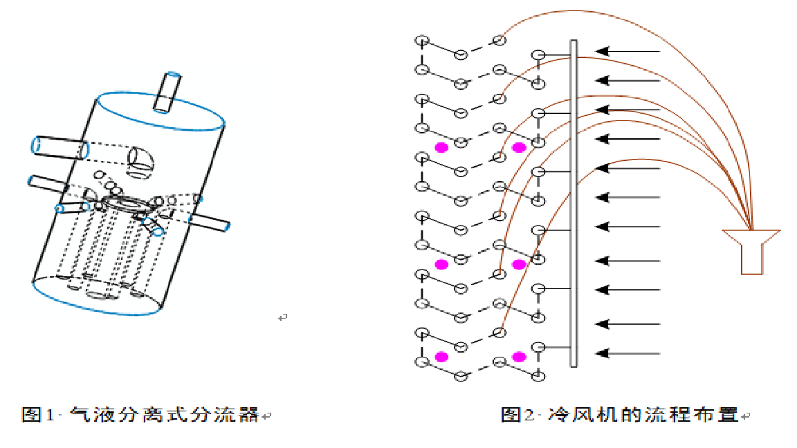 冷风机的流程优化、冷风机均匀分流技术和闪气旁通制冷系统技术相结合,有效提高冷风机效率。